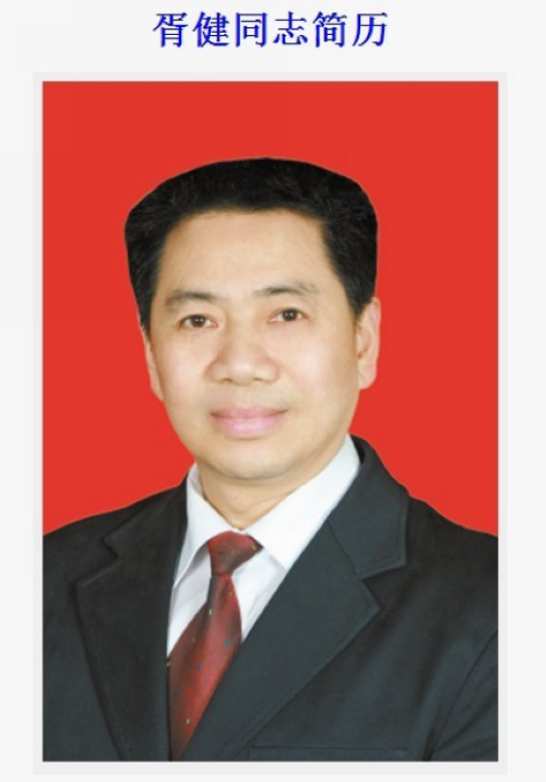 胥健,男,汉族,1958年7月生,四川岳池人,1979年6月加入中国共产党,1976年8月参加工作,南充农学院农学专业毕业,大专学历。