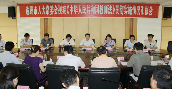 【达州人大网讯 龚兢业 刘德刚 摄影报道】 百年大计,教育为本;教育大计,教师为本。为进一步推动《中华人民共和国教师法》(以下简称《教师法》)在我市的贯彻落实,根据市人大常委会2011年工作安排,8月9日至11日,市人大常委会副主任杨佳鹏带领市人大教育科学文化卫生委员会负责人及部分市人大代表,在市人民政府、市财政局、市教育局、市人力资源和社会保障局等部门负责人陪同下,顶烈日、冒酷暑,先后深入大竹、宣汉、通川区及市区17所中、小学,就贯彻实施《教师法》的情况进行了实地视察,听取了大竹县、宣汉县和通川区人民政府的情况汇报,召开了3次共有76名中、小学教师参加的教师座谈会和3次共有89名学生家长参加的家长座谈会,征询了基层干部、教师和学生家长的意见和建议。与此同时,按照市人大常委会的要求,其余各县(市)人大常委会也组织了视察和检查活动。