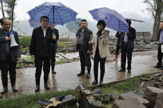 胥主任一行冒雨先后来到渠县三汇镇大洞村实地察看了洪灾损毁情况,在大盘村民房恢复重建点实地察看了恢复重建现场,走访、听取了各挂包点负责人对灾后重建工作情况介绍,并召开了三汇镇灾后重建工作座谈会。