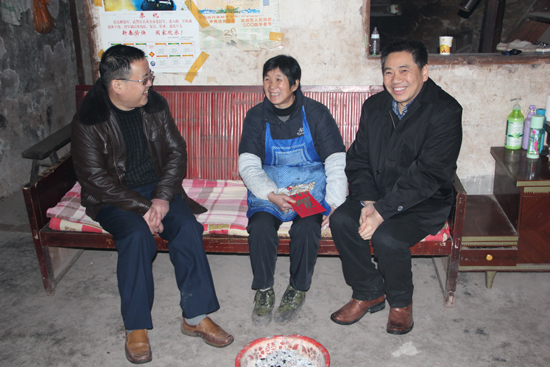 12月22日,万源市虹桥乡的上空已飘起了鹅毛般的大雪,为确保“挂包帮”联系点的困难群众能过上一个温暖、舒心的新年,市人大常委会主任胥健带领市发改委、市交通局、市林业局、市民政局、市水务局和市畜牧局的相关负责人来到了万源市虹桥乡三岔河村,市人大常委会秘书长陈绪科、副秘书长秦孝虎陪同前往。胥健来到了虹桥乡三岔河村刘光芝、唐正碧、朱洪元等困难群众的家中,耐心地询问他们的身体状况和家庭状况,认真了解他们的所想所求、所忧所怨、所急所盼,为他们出谋划策,并送上了慰问金,让困难群众切身感受到了关怀与温暖。