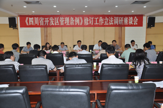 座谈会上,胥健主任建议,修订后的《四川省开发区管理条例》对开发区的定位应更突出,可将其明确为内陆的经济特区,“两化互动”、产城一体发展的先行区,优势产业的聚集区;对开发区的界定应更宽泛,按“一县一区”规划,消除仅限于国家级、省级开发区的局限性;对开发区的体制应更放权,在规划、项目审批、财政、人事、统计等方面充分授权;对开发区的升级应更规范,明确具体条件和程序,便于遵照施行。刘元成副主任建议,应扩展条例的适用范围,在门类上包括工业、农产品、高新技术等各类园区,在行政层面上将市级、县级园区纳入其中。胡杰副市长建议条例解决开发区审批解冻、规划的全域性以及体制机制等方面问题;强化区域内的产业定位,避免同质过剩;优化对优势资源的合理配置,加大对欠发达地区政策和资金支持力度。与会部门也结合工作实际,提出了许多有分量、有价值的意见建议。