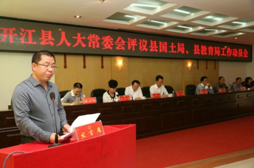 9月13日,开江县人大常委会召开评议县国土资源局、县教育局工作动员会,县人大常委会主任赵大立作动员讲话,县委书记罗健应邀出席会议并作重要讲话。