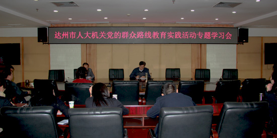 2014年10月20日,市人大常委会机关举行党的群众路线教育实践活动专题学习会,传达学习了中央、省、市党的群众路线教育实践活动总结大会精神,重点学习了习近平总书记、中央第四巡回督导组组长张维庆、省委书记王东明和市委书记焦伟侠的讲话精神,研究了贯彻落实意见。市人大常委会秘书长陈绪科主持会议,机关全体干部职工参加了学习。