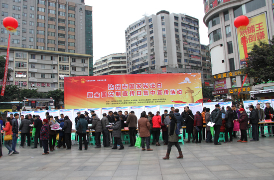 12月4日是首个国家宪法日,由达州市和通川区共同承办的国家宪法日宣传活动在中心广场隆重举行。市人大常委会主任胥健带队对活动开展情况进行了巡视,市委常委、宣传部长邓瑜华,市人大常委会副主任杨佳鹏,副市长、市公安局局长徐承,以及通川区人大常委会主任赵光华等领导一起参加了巡视。