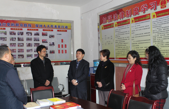 在双河镇人大代表联络室,李江一行认真听取情况介绍,对人大代表联络室在发挥“倾听民声、为民代言,宣传政策、为党传声,为民服务、排忧解难”,各个工作方面的具体做法、好的经验、取得的成绩等方面作了详细了解,充分肯定双河镇人大代表联络室在开展“定时接访、专题下访、‘四访’和‘述职’、为人民群众办好事实事、人大代表学习”四项活动中创造出的好经验和做法。