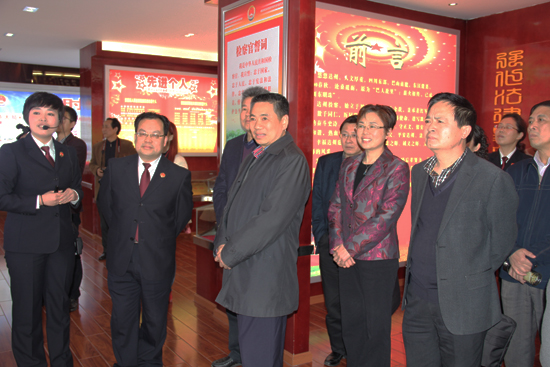 3月19日,市人大常委会主任胥健、副主任张德珍、邹惠明、王新权、秘书长陈绪科及部分常委会委员视察了市人民检察院预防工作展板、陈列室、多功能会议室,随后召开了座谈会,会上听取了市检察院检察长付全忠对今年以来全市检察工作的情况汇报、副检察长熊斌对全市检察机关预防职务犯罪工作的专题汇报,与会同志就转变观念、扩展领域、创新方式、提高素质、加强保障等方面,为进一步搞好预防职务犯罪工作,营造良好的政治生态提出了很好的意见和建议。