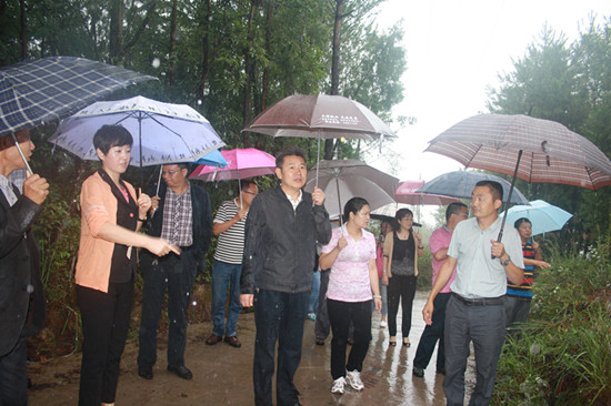 邹惠明副主任一行与万源市人大常委会主要负责人和乡村两级主要负责同志一道,冒雨察看了驻村工作组前期开展工作的情况。一行人先后到集中供水建设点和清脆李产业发展基地调研,而后前往村委会察看村委会阵地改造建设情况。邹惠明副主任对驻村工作组几个月来所取得的成绩给予了充分肯定,并对下一步的工作提出了要求。