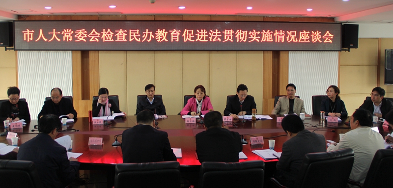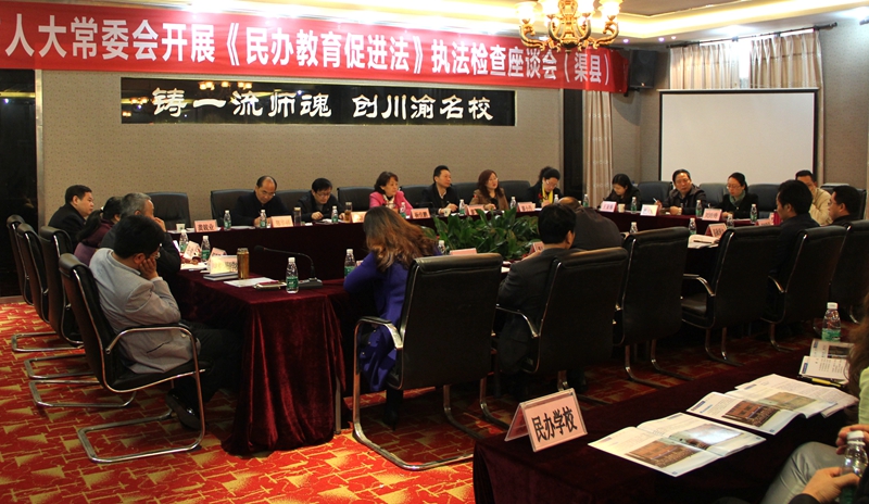 【本站讯 龚兢业 摄影报道】为认真贯彻实施《中华人民共和国民办教育促进法》,切实推动实施科教兴国战略,促进全市民办教育事业健康发展,3月28日至31日,市人大常委会副主任杨佳鹏带领执法检查组,先后深入渠县、大竹、达川区及达州城区部分民办学校进行了实地检查,了结了实情,获得了第一手资料。与此同时,市人大常委会委托各县(市、区)也同时开展了该项执法检查活动,并撰写了书面汇报材料。4月1日,举行了市人大常委会检查民办教育促进法贯彻实施情况座谈会,杨佳鹏出席会议并讲话,市人大执法检查组成员;市教育局、市财政局、市人社局负责人;新世纪学校、华西职校、西南职校(行知中学)、铭仁园中学负责人等参加了会议。