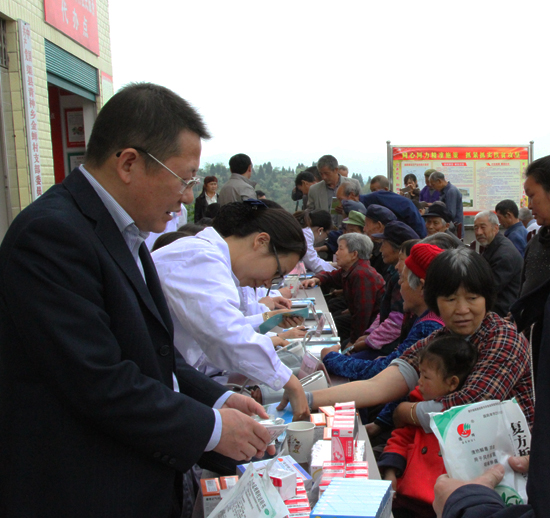 春雨淅沥。当天上午,市农业局、市文体广新局、市中心医院和渠县农林局在金蝉村村支两委办公室前的院坝里搭起了一排长桌,围绕义务诊病体检、农业技术指导、免费发放图书药品等6项活动内容,来自各部门(单位)的专家领导及工作人员共计20余人,各施所长,通过现场设立的10处服务咨询点,为金蝉村村民献上了品类丰富、内容扎实的文化科技卫生“自助餐”,受到了基层的热烈欢迎、收获了群众的真心赞扬。