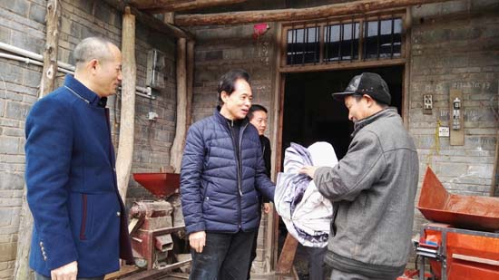 在何家垭口村,吴应刚一行走访慰问困难群众,实地查看异地搬迁安置点建设情况,详细了解脱贫攻坚落实情况,并听取了镇、村两级开展精准扶贫工作的情况介绍。在困难群众王恩彬家中,吴应刚送去棉衣棉被等过冬物资,详细了解其家庭收入,子女就业和疾病治疗情况。在了解到王恩彬利用产业扶贫贷款发展肉牛养殖业,目前已存栏40余头,过两年不仅能提前还清贷款还能每年有七万余元的收入时,吴应刚十分高兴,鼓励他坚定信心战胜眼前的困难,并叮嘱当地党委、政府要尽力帮助贫困户解决生产生活中的实际困难。