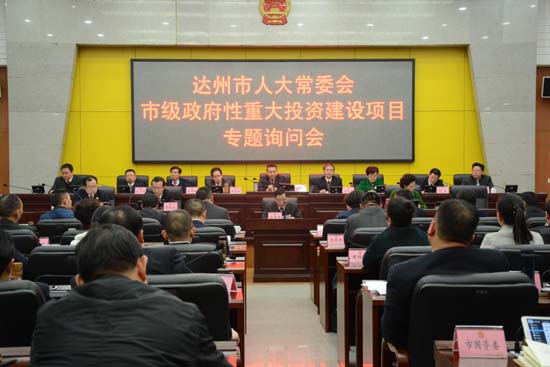 为回应社会各方关切,助推重大项目建设,促进达州经济社会发展,市人大常委会于12月23日下午举行市四届人大常委会第二次会议,以联组会议形式,专题询问我市市级政府性重大投资建设项目。9位常委会委员就市级政府性重大投资建设中老百姓关注度高,反应迫切的问题进行了现场询问,市财政局、市城管执法局、市国土资源局等9个应询部门主要政府性重大投资建设财力保障问题,市财政局负责人表示:通过四种方式筹集资金。一是全力以赴聚财。二是千方百计争取资金。三是大力吸引社会资金投入政府性投资项目建设。近三年,市级财政通过四两拨千手段撬动引导社会资金约140亿元投入市级项目建设。四是创新模式引资。今年以来,我市积极做好PPP项目筛选储备工作,入库49个项目,居全省前列。