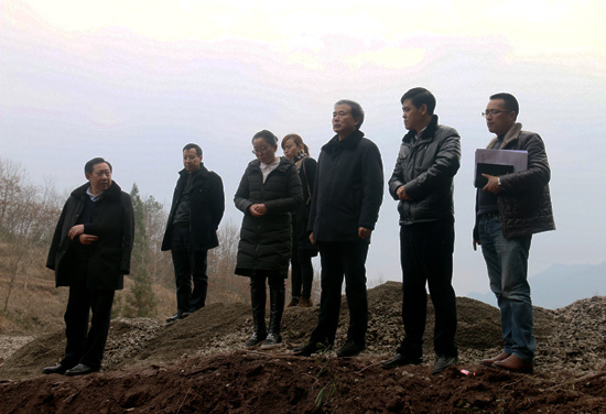 在实地察看帮扶项目中,郑友清一行来到黄钟镇吴家沟村学堂梁堰渠维修工程施工现场,详细了解工程预算、施工队伍、工程质量、建设进度和受益群众等基本情况,并针对存在的问题提出要求。郑友清强调,帮扶项目是帮扶部门(单位)的爱心项目,是惠泽广大人民群众的民生工程、是脱贫致富的基础工程,一定要加快进度,加强监督,注重安全,保证质量,发挥效益。
