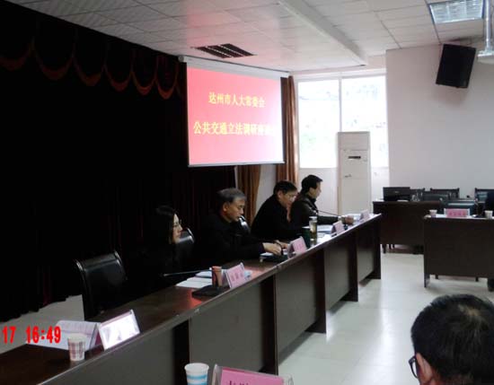 根据达州市第四届人大常委会立法规划,市人大常委会将《达州市城市公共交通条例》列为2017年立法计划。调研组一行先后视察了火车站、秦巴物流园、达州新机场工地、南城杨柳园区、汽车南客站、北城肖公庙、徐家坝等已建和待建的公交首末站,了解公交规划建设、设施管理、安全服务、公交营运及政策保障、监督检查等相关情况。走访公交企业,了解生产经营状况。组织市发改、财政、交通、规划等部门负责人和通川区、达川区人大及区级交通运管部门负责人座谈,听取相关意见建议。