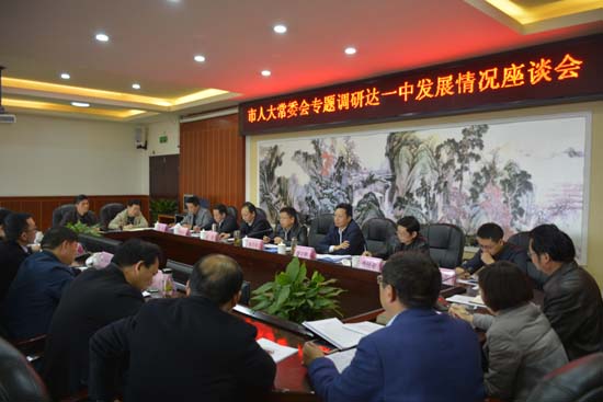 在专题调研座谈会上,市教育局、市财政局及达一中负责同志就达一中发展相关情况作了情况汇报,调研组成员就如何办好达一中结合学习考察所思所感作了发言。朱丰年指出,达州市第一中学作为市本级直属中学,有着百年的办学历史,成果是丰硕的、教师队伍是可信赖的、班子是尽心尽力的;市委市政府对达一中的发展是非常重视的,全市人民对达一中办成百年名校是充满期待的。他要求,市级相关部门和达一中要进一步深化认识,通过改革创新实现教育质量与整体形象的大提升。要切实加强学校班子建设,达成办学共识,形成工作合力;要认真研究,优化生源结构,扩展生源范围,强化教学管理和服务;要加强师资力量培育、骨干教师培养、教学教研提升等软件建设,推动教师队伍能力、素质、思想、作风总体提升;要深化学校人事制度、考核制度、分配制度改革创新,全面激发教师活力;要切实抓好达一中基础设施建设,全面提升办学硬件水平,按照建一流名校目标,作好规划并分年度实施;要加强对外宣传,打造校园文化,提升学校美誉度。