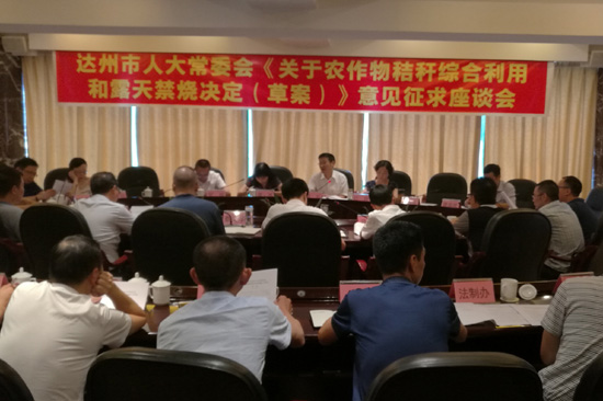 2017年7月19日、24日,市人大常委会副主任胡兵赴大竹县、达川区等地征求《市人大常委会关于农作物秸秆综合利用和露天焚烧的决定》(征求意见稿)修改意见。