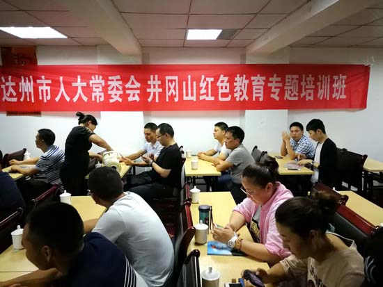 为深入贯彻习近平总书记系列重要讲话精神,积极落实“两学一做”学习教育内容,促进机关干部增强党性观念、提升思想素质,9月5日至11日,市人大常委会机关党委委托江西省吉安市青原井冈山红色教育干部学院举办了达州市人大常委会2017年井冈山思想政治教育培训班。市人大常委会党组成员、副秘书长、办公室主任向守宇带领机关部分党务工作者和优秀党员等11名学员参加了学习培训并圆满完成学习任务。