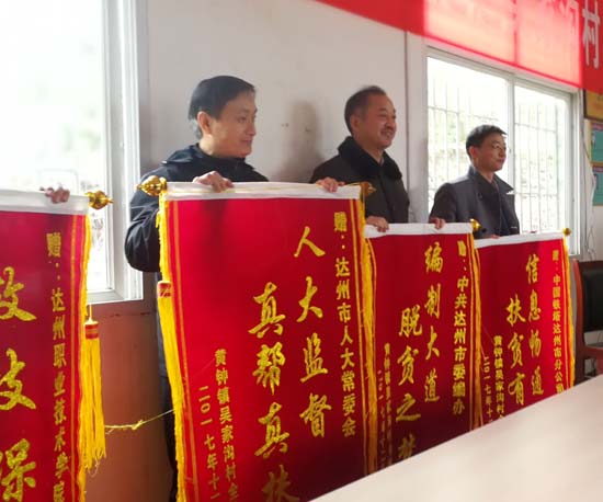闻讯赶来的吴家沟村村民自发向达州市人大常委会、达州市委编办、达州职业技术学院、达州铁塔公司赠送锦旗,表达对帮扶单位的感激之情。各帮扶单位面对村民的赞誉和期望,更感责任重大,表示将不负重托,带领村民继续脱贫奔康。