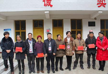 当天下午,慰问调研组一行还来到柑子村。在村委会院内,向15户结对帮扶贫困户集中发放由市红十字会捐助的2500元慰问金和价值5000元的棉衣、棉被、食用油、大米等慰问物资,向他们并通过他们向全村人员致以节日的祝福。贫困群众纷纷表示感谢,一定会自力更生,争取早日脱贫,不辜负大家的爱心和期望。