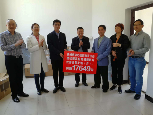 朱丰年一行先后深入樊哙镇柑子坝村、高伦村,实地走访贫困群众,查看基础设施规划建设情况,分别组织召开工作座谈会。在高伦村新落成的村卫生室里,达州市中心医院、宣汉县卫计局捐赠了电视机、电脑等办公设施和卫生室医疗仪器设备31台(件)。