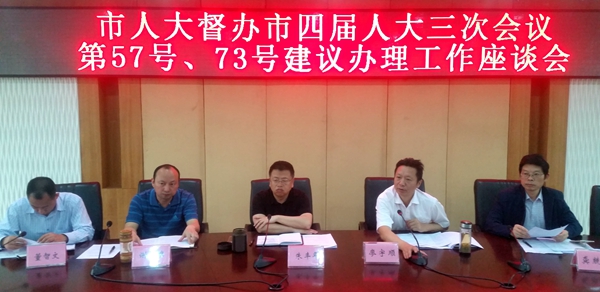 5月31日,市人大常委会朱丰年带领市人大教科文卫委委员会组成人员及市教育局负责人,对市四届人大三次会议第57号、73号代表建议开展了督办调研。调研组深入达州市及通川区主城区部分民办幼儿园和民办教育机构,进行了实地查看,获得了第一手资料。6月1日,召开了两个建议案办理工作座谈会,市教育局、市食药局、市公安局负责人参加了会议。