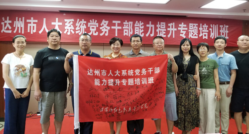 为深入学习贯彻习近平新时代中国特色社会主义思想和党的十九大、十九届二中、三中全会精神,提升党性修养,强化“四个意识”,促进党员干部团结讲政治、奋斗讲实干,7月23日至27日,市人大常委会委托井冈山红色教育干部学院举办了2018年达州市人大系统党务干部能力提升专题培训班。市人大常委会副秘书长李斌带领市人大机关党务工作者、优秀党员代表以及各县(市、区)人大常委会分管领导和帮扶联系贫困村(社区)党务工作者共计50人参加了专题培训并圆满完成学习任务。
