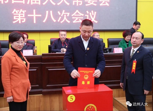 12月27日,市第四届人大常委会召开第十八次会议。市人大常委主任胥健主持会议。市人大常委副主任郑友清、吴应刚、梅榕、陈绪科、胡兵、朱丰年出席会议。会议决定,市四届人大四次会议大会于2019年2月22日至25日在巴山大剧院召开,会期4天。会议任命熊隆东为达州市监察委员会副主任,决定为达州市监察委员会代理主任。