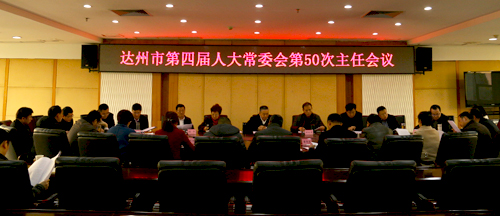 1月21日,达州市第四届人大常委会第50次主任会议召开。市人大常委会主任胥健主持会议,副主任郑友清、梅榕、陈绪科、胡兵、朱丰年出席会议。会议讨论了《达州市人大常委会工作报告(草案)》,讨论了达州市第四届人民代表大会第四次会议有关事项。