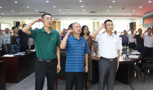 7月1日,在中国共产党成立98周年之际,市人大常委会机关3名同志迎来了他们的“政治生日”。机关党组成员现场为他们赠送生日贺卡,全体党员重温入党誓词。通过分享入党故事,回望追梦历程,大家鼓劲扬帆再出发!