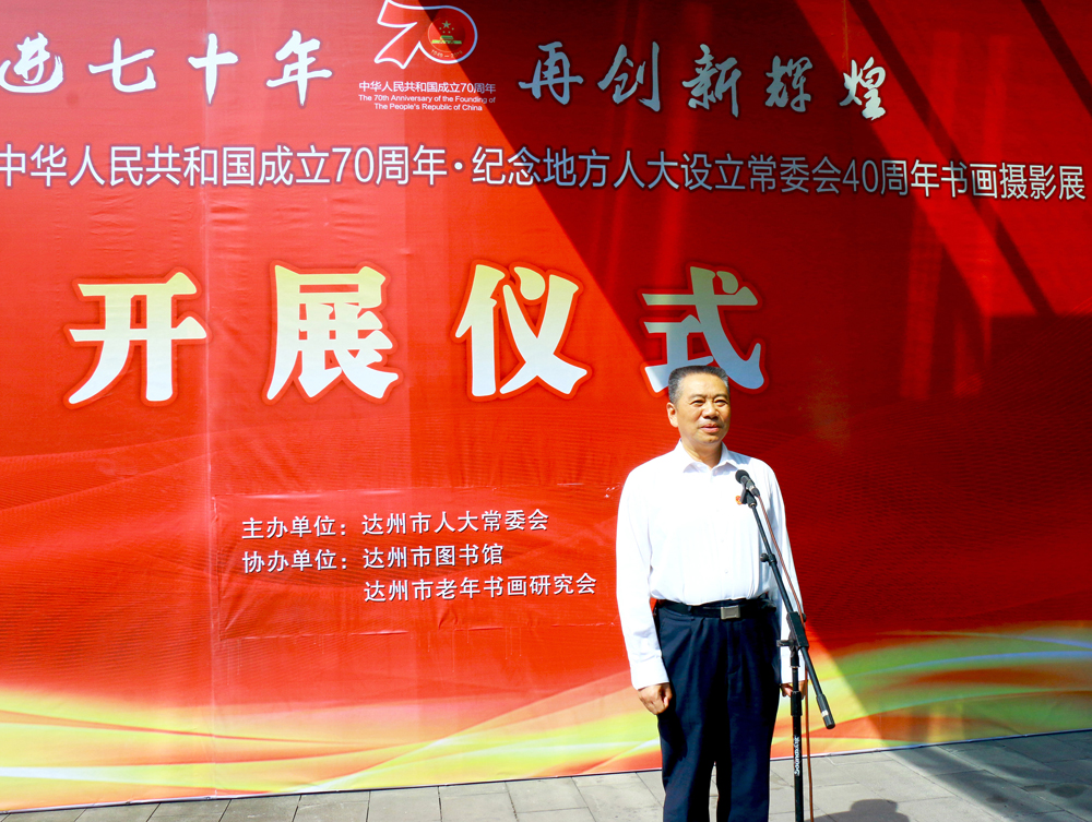 为了庆祝新中国成立70周年,纪念地方人大常委会设立40周年。23日上午,主题为“奋进七十年 再创新辉煌”的达州市人大系统书画摄影展在市图书馆开展。市人大常委会主任胥健出席仪式并宣布开展。