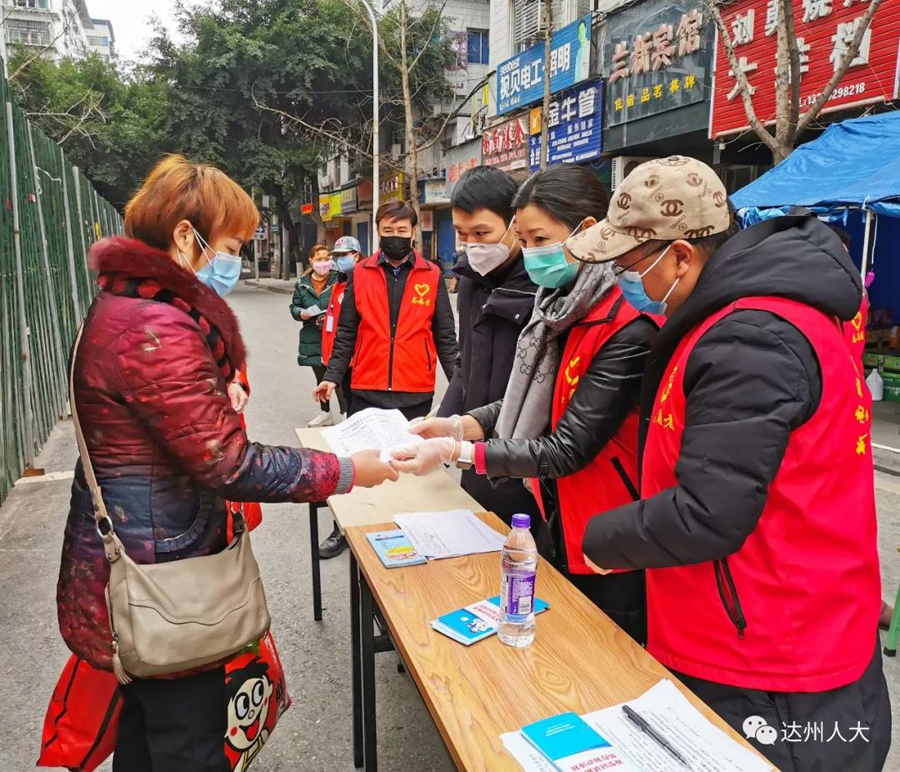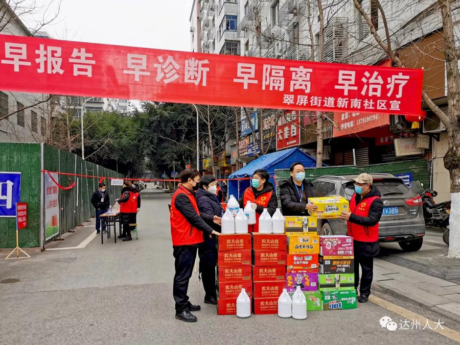 正值新型冠状病毒感染肺炎疫情防控的关键时期,2月18日,受市人大常委会主任、党组书记胥健委托,市人大常委会机关党组书记、秘书长向守宇和市人大常委会机关志愿者,到联系社区达川区翠屏街道新南社区开展抗疫慰问活动,为他们送去了方便面、矿泉水、消毒液和口罩等物资。