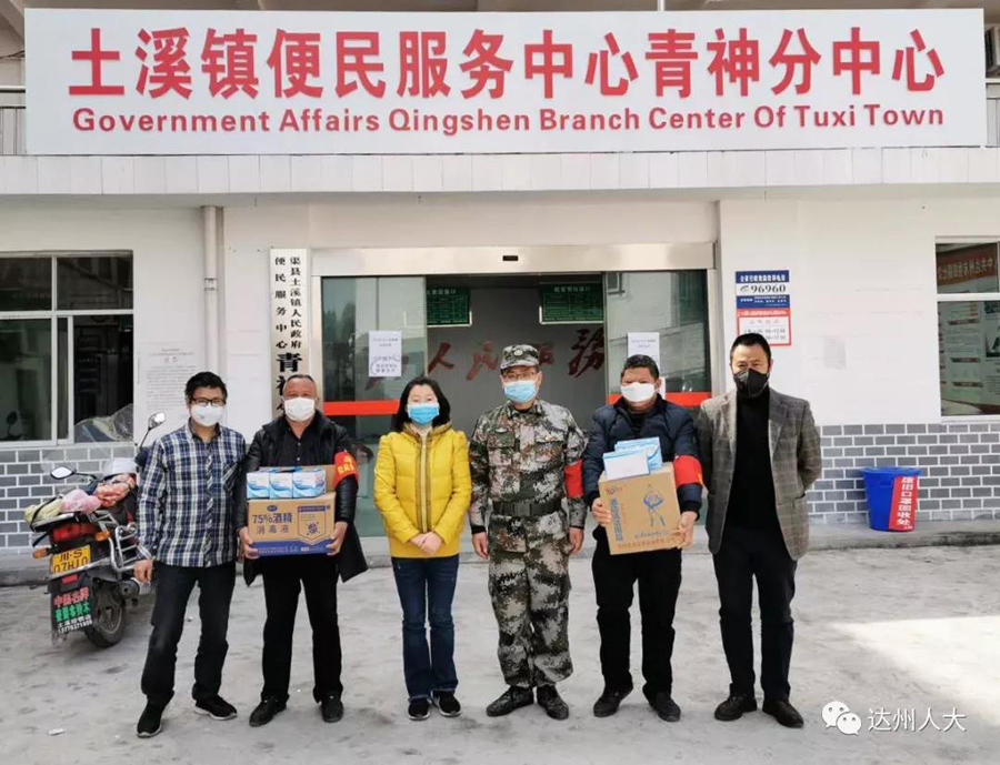 2月17日,市人大常委会办公室驻村工作队为市人大常委会办公室联系的渠县土溪镇金蝉村、滑石村奋斗在疫情防控阻击一线的村组干部及党员先锋们送去300个口罩,24瓶消毒酒精,4桶84消毒液。