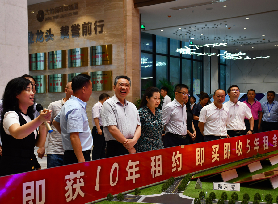 6月17日,市人大常委会主任胥健带队深入大竹县调研服务业发展情况。市人大常委会副主任胡兵,副市长王蔚荩一同调研。