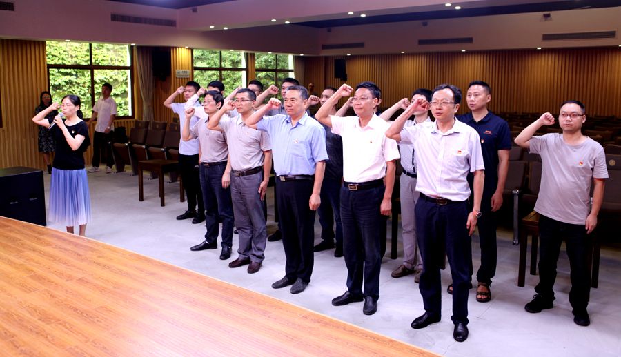 大家庄严举起右手,重温入党誓词。