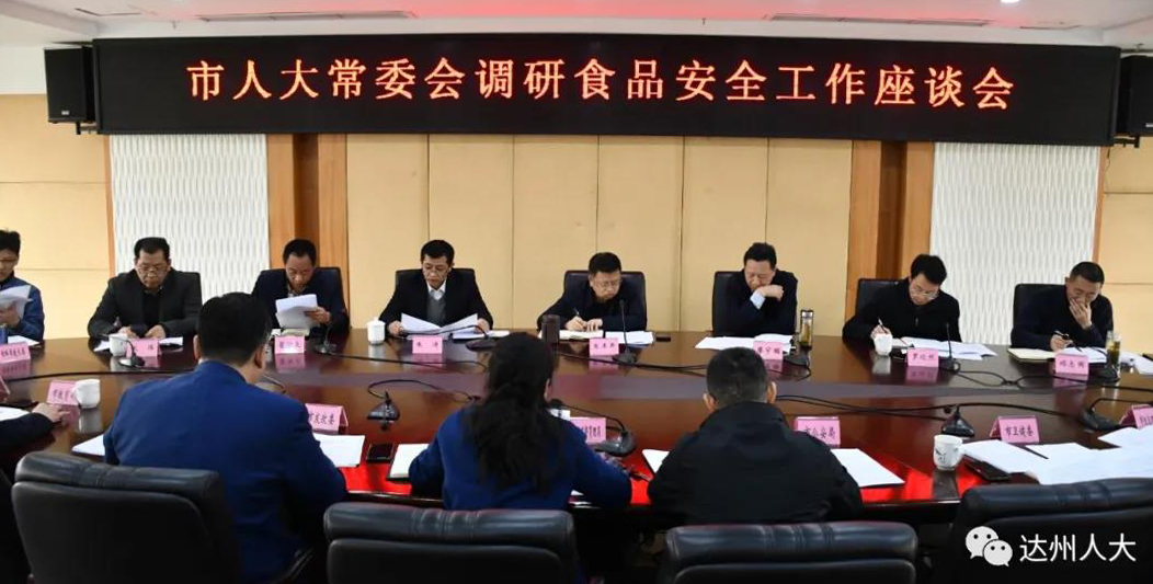 为进一步了解全市食品安全工作开展情况,3月中下旬市人大常委会副主任朱丰年带队到大竹县、通川区调研并组织召开调研座谈会。市人大常委会二级巡视员廖宇顺和常委会部分组成人员、社会委全体组成人员、市市场监督管理局负责同志参加调研。