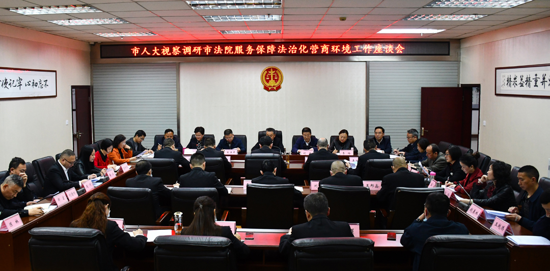座谈会上,调研组听取了市中级人民法院院长易晓东关于全市法院服务保障法治化营商环境工作的情况汇报和相关同志发言。