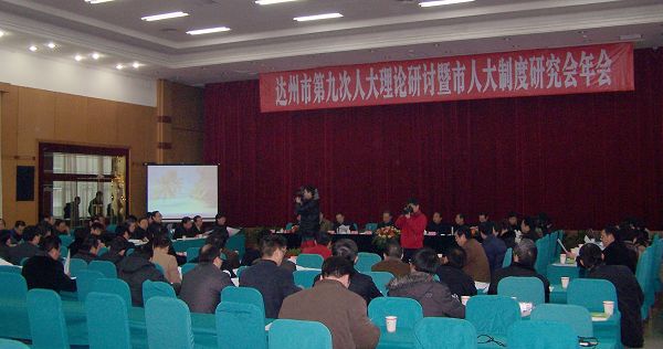 [本站讯 龚兢业/报道]为纪念改革开放30周年,研讨在新的形势下如何进一步完善人民代表大会制度,推进民主法治进程,2008年12月25日,达州市第九次人大理论研讨暨市人大制度研究会年会在达州宾馆隆重召开。原市人大常委会主任、研究会会长谢天刚;市人大常委会党组书记、副主任,研究会副会长邓宏志;市人大常委会党组副书记、副主任,研究会副会长张志科;市人大常委会副主任、研究会副会长冯全礼、熊清明、符泽友、严选、周述康、廖继康;原市人大常委会副主任、研究会副会长李正郁,市人大常委会秘书长、研究会副会长陈绪科等领导出席会议。市人大制度研究会各位理事,各县(市、区)人大常委会主要负责人,有关专家、学者、部分论文获奖作者,新闻记者等140余人参加了会议。