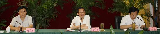 市人大常委会副主任严选(中)、刘元成(右),秘书长陈绪科出席会议