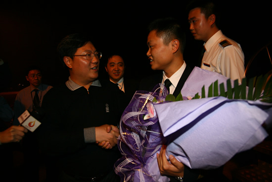 达州市委常委、副市长何平与机组成员亲切握手
