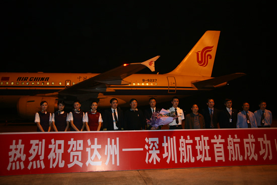 深圳飞达州首航晚点 副市长何平接机(图)