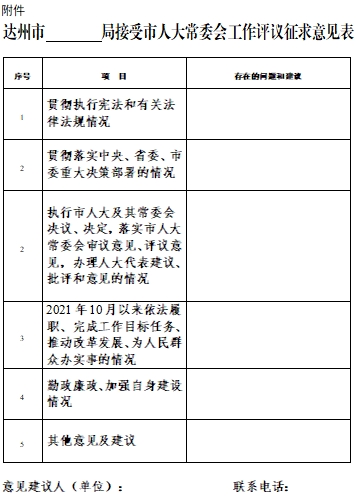 附件:达州市XX局接受市人大常委会工作评议征求意见表