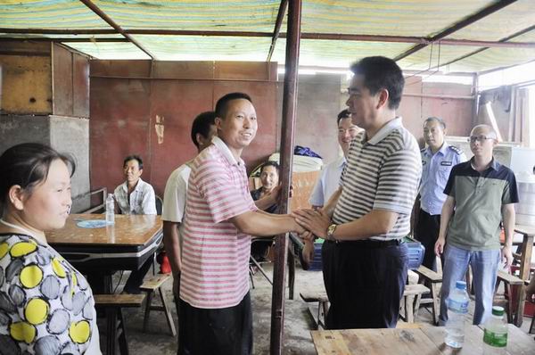 渠县三汇镇处于州河、巴河、渠江的交汇处,“7.18”洪灾中水位超过历史记录,河水净涨24.6米,全镇几乎一片汪洋。李向志首先来到三汇镇农贸市场检查灾情,他走进农贸市场内一个食店内,“老乡你的财产损失大不大?贵重物品有没有抢出来?现在通水通电了吗?”每到一处,李向志都详细了解当地群众的的受灾情况,鼓励他们树立信心,战胜洪灾,做好灾后自救。