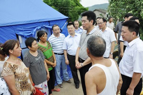 一路检查指导,一路关心问候,温暖着受灾群众的心坎。李向志还走进万和村六组临时安置点的帐篷区,看望慰问了受灾群众。李向志关切地询问有没有水喝,有没有饭吃,有没有衣服穿。看到市委书记到村里来关心看望慰问大家,村民纷纷围拢到书记周围,不少老人和妇女噙着泪拉着书记的手,大家争先恐后地回答“感谢镇上的领导帮助我们转移撤离,虽然房屋垮塌了,庄稼冲毁了,但是人都很安全,贵重财物损失不大。”李向志告诉大家,困难是一时的,在党和政府的坚强领导下,我们一定会战胜自然灾害。